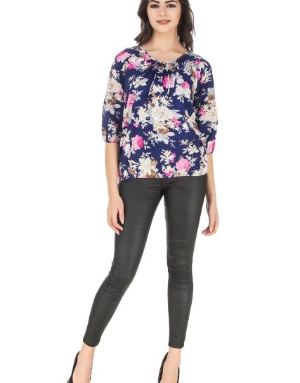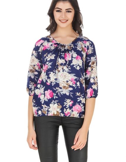 Casual 3/4th Sleeve Floral Print Women’s Blue Top