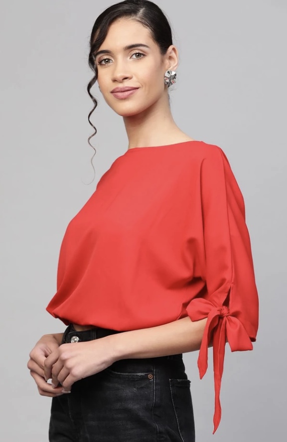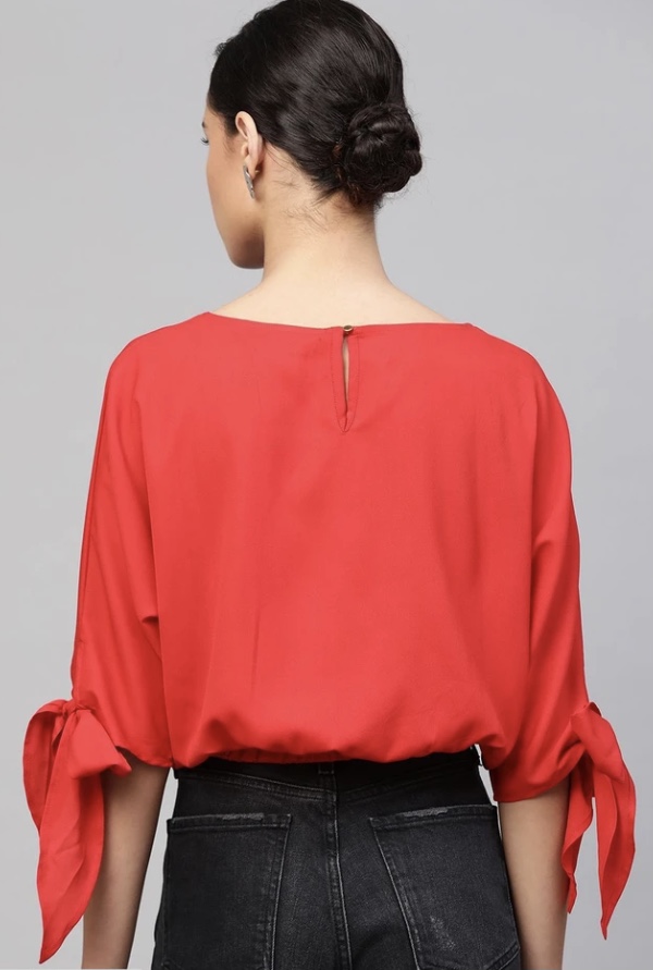 Do you have any question about Red Sleeve Tie-Up Crop Top