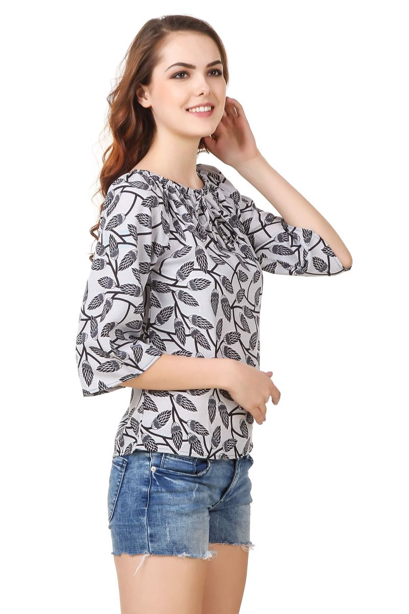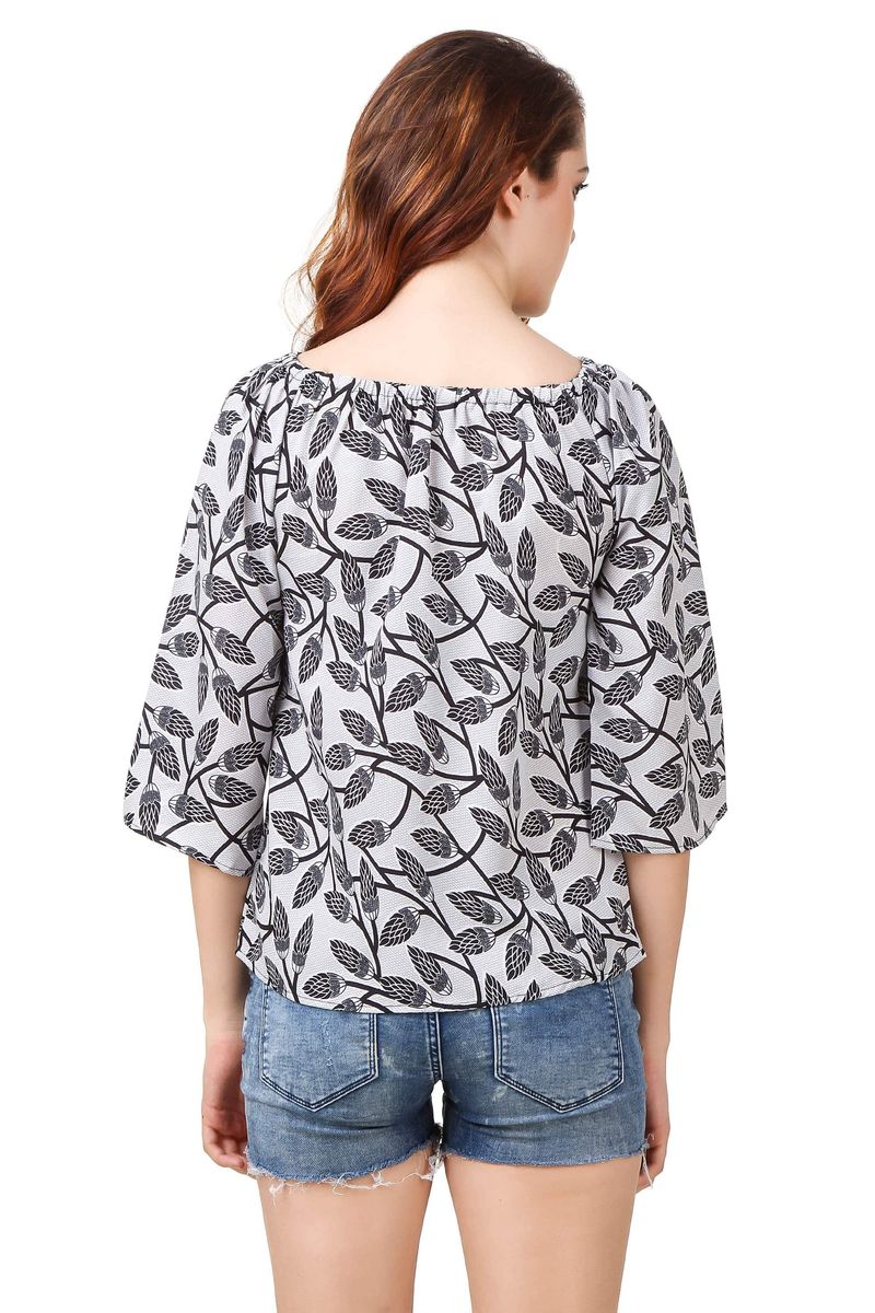 Be the first to review “White Party Crepe Printed Elastic Neck Women’s top”